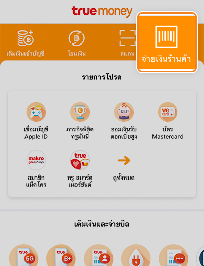 1. เปิดแอปพลิเคชัน ทรูมันนี่ วอลเล็ท