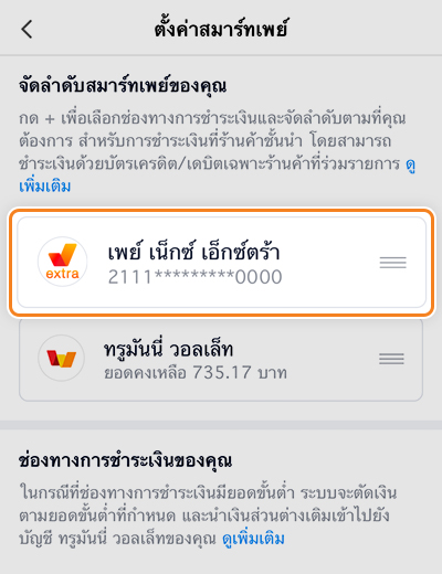 4. เลื่อน เพย์ เน็กซ์ เอ็กตร้า มาไว้อันดับแรก