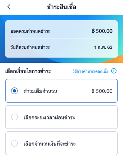 3. ลูกค้าสามารถเลือกวิธีการชำระคืนวงเงิน ได้ 3 วิธี ได้แก่