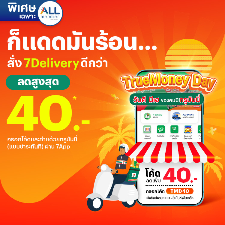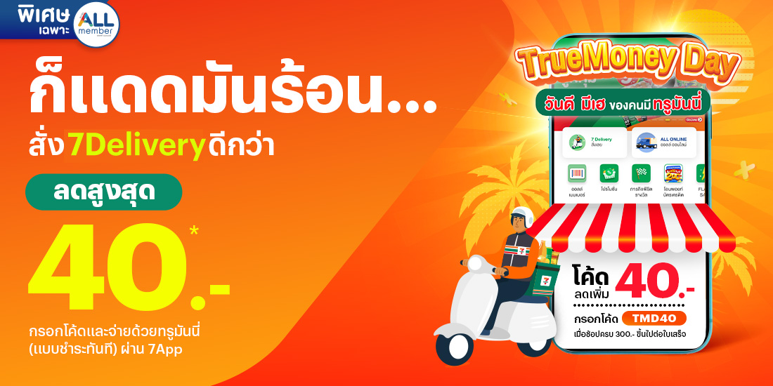 TrueMoney Day ! รับส่วนลด 40 บ. เมื่อซื้อสินค้า ผ่าน 7Delivery และจ่ายด้วยทรูมันนี่ แบบชำระทันที ผ่าน 7App