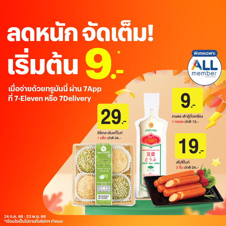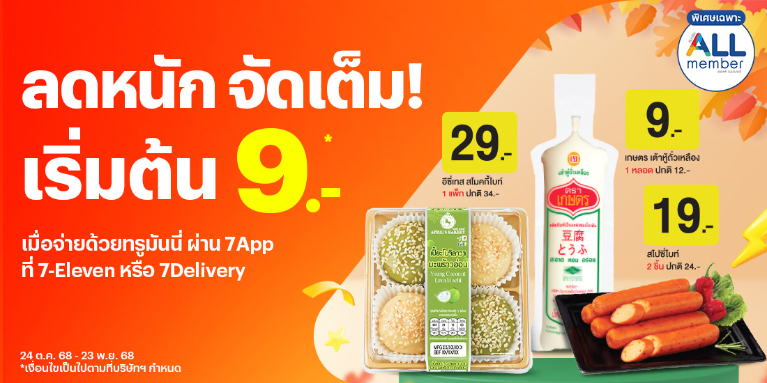 สินค้าราคาพิเศษ! เริ่มต้นที่ 9 บ. เพียงซื้อสินค้าที่เข้าร่วมรายการที่ 7-Eleven หรือ 7Delivery และจ่ายด้วยทรูมันนี่ ผ่าน 7App