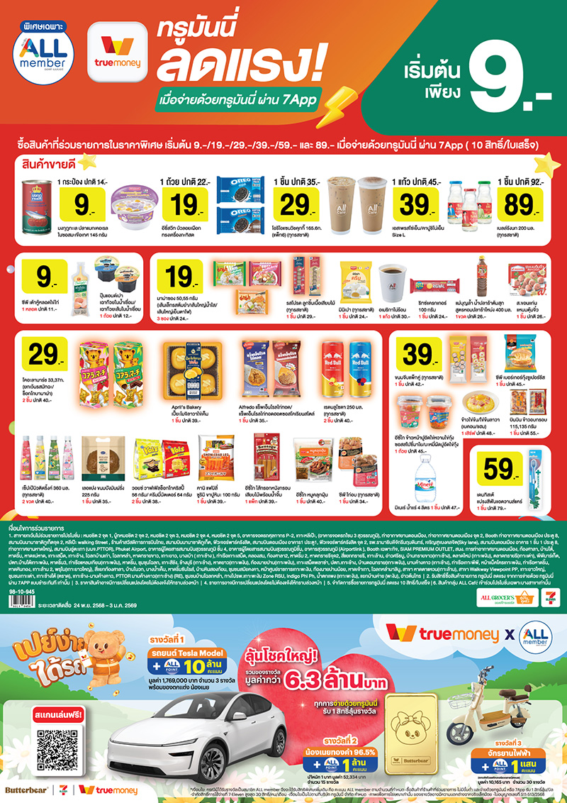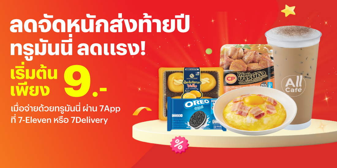 สินค้าราคาพิเศษ! เริ่มต้นที่ 9 บ. เพียงซื้อสินค้าที่เข้าร่วมรายการที่ 7-Eleven หรือ 7Delivery และจ่ายด้วยทรูมันนี่ ผ่าน 7App