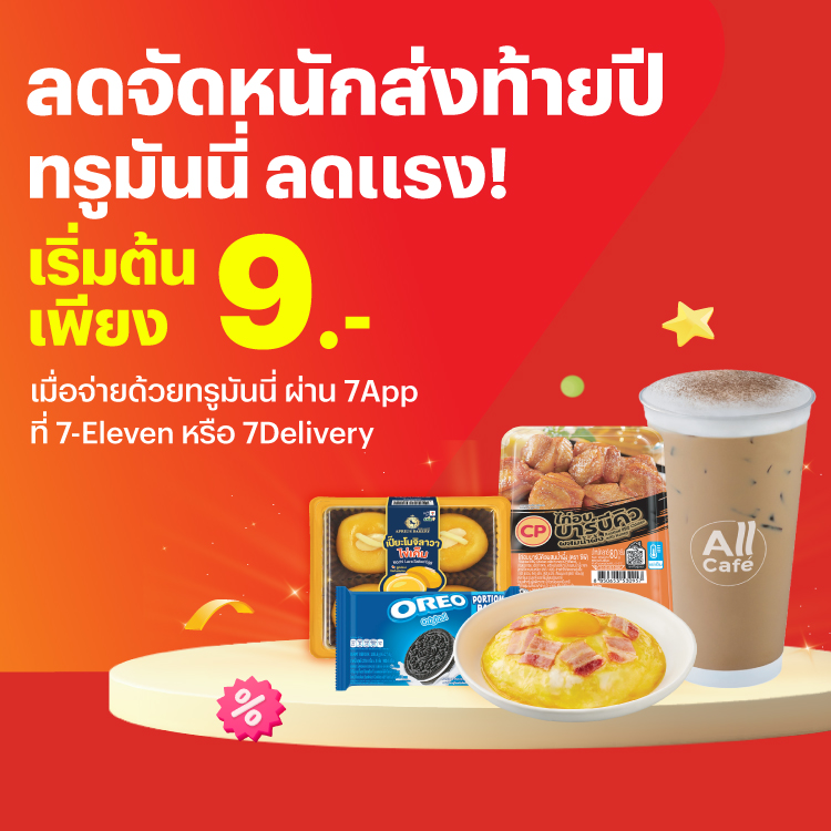 - เลือกจ่ายด้วยทรูมันนี่ ผ่าน 7App เท่านั้น (รวมถึง 7Delivery Pay now และ 7App)