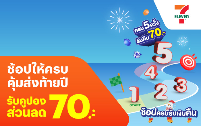 7-Elevenเงินคืน 70 บ. เมื่อช้อปสะสมครบ 5 ครั้ง24 พ.ย. 68 - 3 ม.ค. 69 tmn-hathairat2025-12-17T13:35:18+07:003 ม.ค. 2025|Categories: 7-Eleven, 7-Eleven - 7Delivery, 7-Eleven - ALL Online, promotion : 7-Eleven, retail : 7-Eleven|Tags: 7-11, 7-Eleven, 7Delivery, คูปอง 7 Eleven, โปรโมชัน เซเว่น|