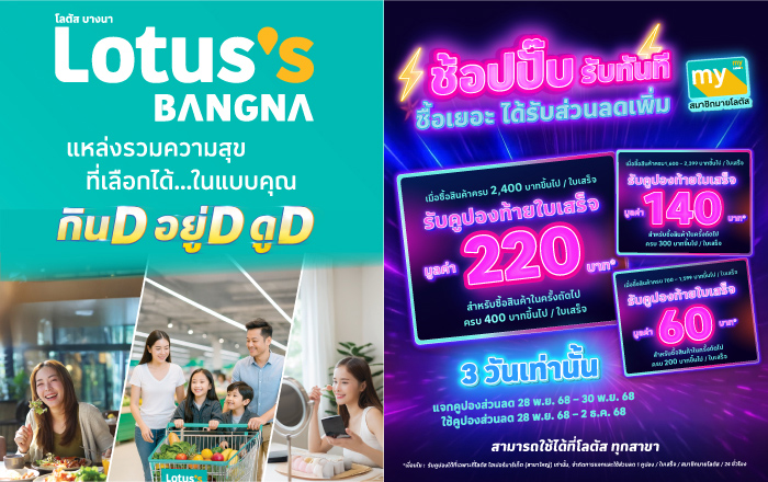 Lotus'sช้อปคุ้มที่โลตัส สาขาบางนา เท่านั้น25 พ.ย. 68 - 31 ธ.ค. 68 tmn-hathairat2025-11-27T13:14:36+07:0021 พ.ย. 2025|Categories: Lotus's, Lotuss-retail : Lotus's, promotion - Lotus's, retail - Lotus's|