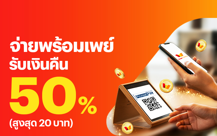 จ่ายได้ทุกร้านรับเงินคืน 50%* เมื่อจ่ายครั้งแรก1 ต.ค. 68 – 31 ธ.ค. 68 Tanaiphat wan2025-09-30T11:56:56+07:0030 ส.ค. 2025|Categories: promotion : กิน ดื่ม ช้อป, retail : อื่นๆ|