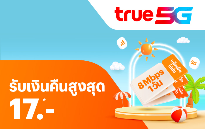 True5Gซื้อแพ็กเสริม รับเงินคืนทรู 50% ไม่อั้น1 ม.ค. 68 - 31 ธ.ค. 69 tmn-hathairat2026-03-31T14:52:19+07:0030 ต.ค. 2025|Categories: promotion : เติมเงิน เติมเน็ต จ่ายบิล, TruemoveH - Vas|Tags: เติมเน็ต, เติมเน็ตทรู, เน็ตรายวัน, เน็ตไม่สะดุด|