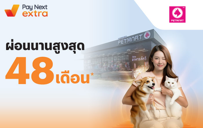 - ผ่อนชำระด้วยอัตราดอกเบี้ย 0% นาน 6 เดือน เฉพาะการซื้อสินค้าและ/หรือบริการที่ร่วมรายการ โดยใช้เพย์ เน็กซ์ เอ็กซ์ตร้า ณ ร้านและสาขาที่ร่วมรายการในช่วงระยะเวลารายการ ตามเงื่อนไขที่กำหนดเท่านั้น(โปรดสอบถามรายละเอียดสินค้าและเงื่อนไขเพิ่มเติม ณ จุดขาย)