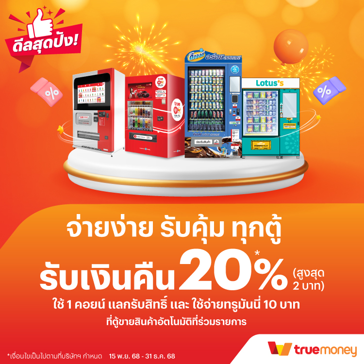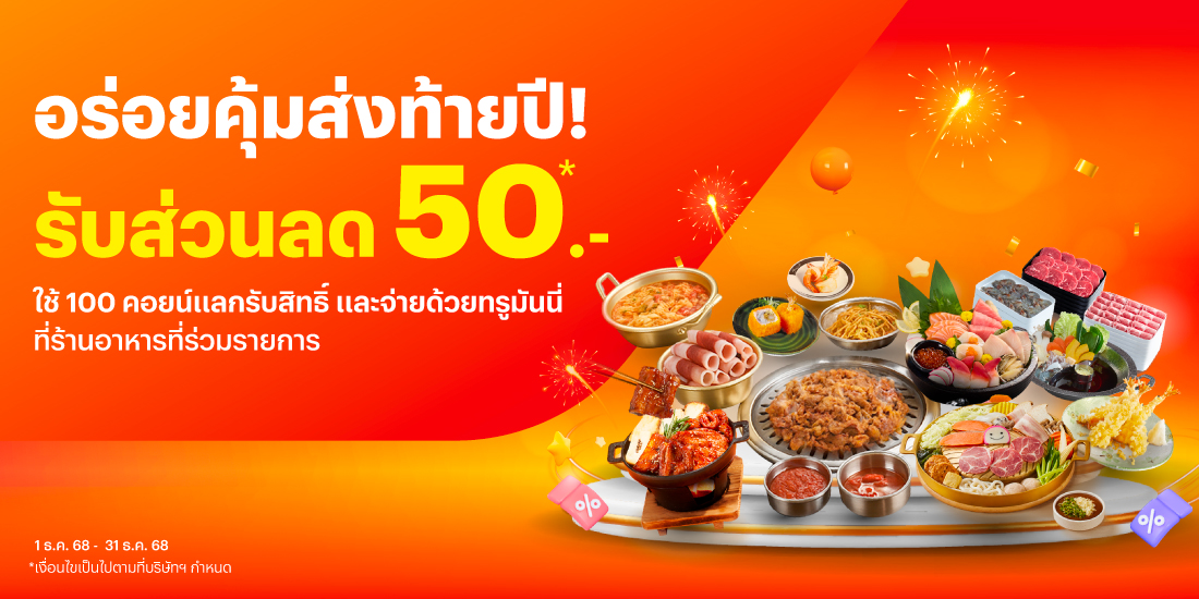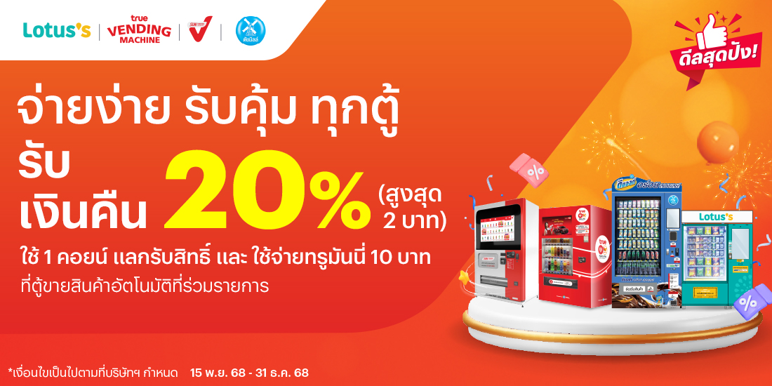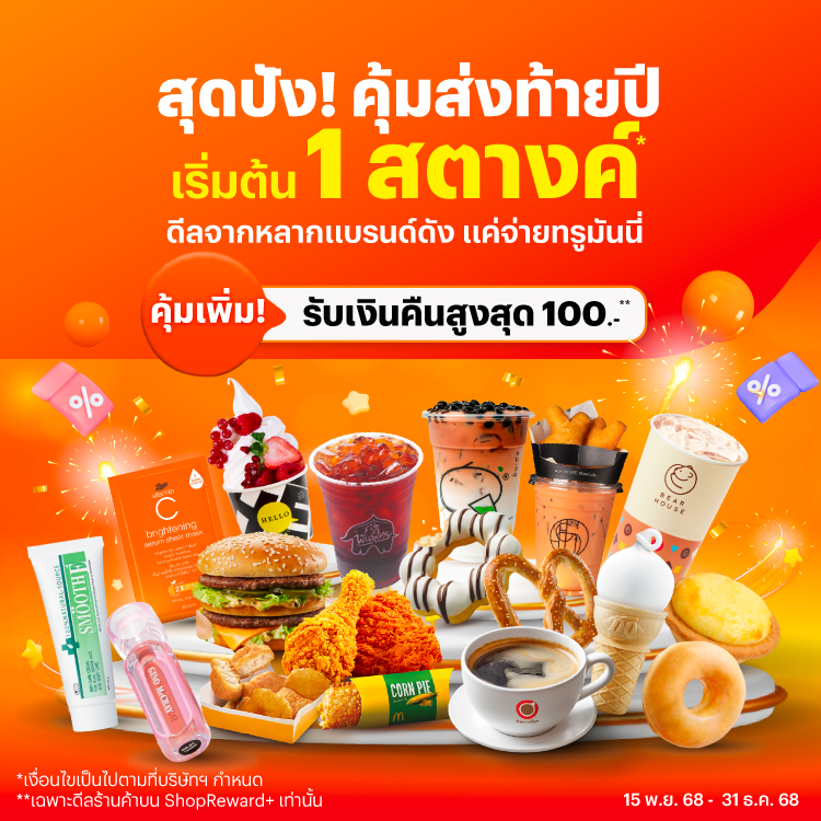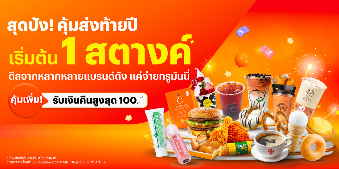 คุ้มสุด ส่งท้ายปีจากหลากหลายแบรนด์ดัง15 พ.ย. 68 - 31 ธ.ค. 68 คุ้มที่สุด ส่งท้ายปี เพียงจ่ายทรูมันนี่ เริ่มต้น 1 สตางค์* ทรูมันนี่ รวมดีลสุดปังไว้ให้แล้วจากหลากร้านค้าแบรนด์ดัง ทุกการจ่ายรับสิทธิ์ลุ้นรางวัลใหญ่ เทสล่า จักยานไฟฟ้า ทองคำ รวมมูลค่ากว่า 6.3 ล้านบาท คุ้มเพิ่ม! รับเงินคืนสูงสุด 100.- เมื่อซื้อดีล ShopReward+ บททรูมันนี่ คลิกรับสิทธิ์ ดีลทั้งหมด เครื่องดื่ม ของหวานและของทานเล่น ร้านอาหาร ช้อปปิ้งและความงาม ตู้ขายสินค้าอัตโนมัติ คูปองส่วนลด ดีล ShopReward+ แลกรับคูปองสุดคุ้ม {{coupon.desc}} {{coupon.brand}} รับคูปอง ซื้อเลย แลกคูปอง สิทธิ์เต็ม วิธีรับคูปองส่วนลด วิธีรับส่วนลดร้านค้าช็อปรีวอร์ดพลัส Tanaiphat wan2025-12-03T09:23:18+07:0015 พ.ย. 2024|Categories: promotion : กิน ดื่ม ช้อป, retail : อื่นๆ|