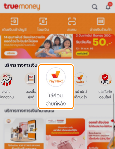 3. เลือก เพย์ เน็กซ์ (ใช้ก่อน จ่ายทีหลัง)