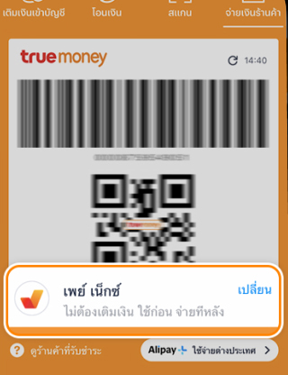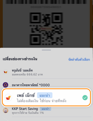 2. คลิก เปลี่ยน เพื่อเลือกใช้ เพย์ เน็กซ์ (ใช้ก่อน จ่ายทีหลัง)