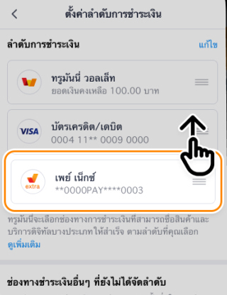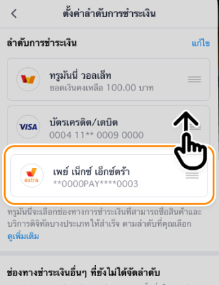 ปรับลำดับช่องทางชำระเงิน เพย์ เน็กซ์ เอ็กซ์ตร้า ตามต้องการ