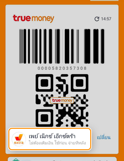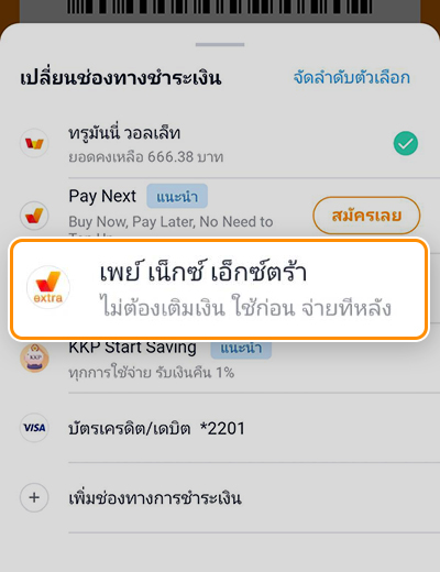 2. คลิก เปลี่ยน เพื่อเลือกใช้ เพย์ เน็กซ์ เอ็กซ์ตร้า