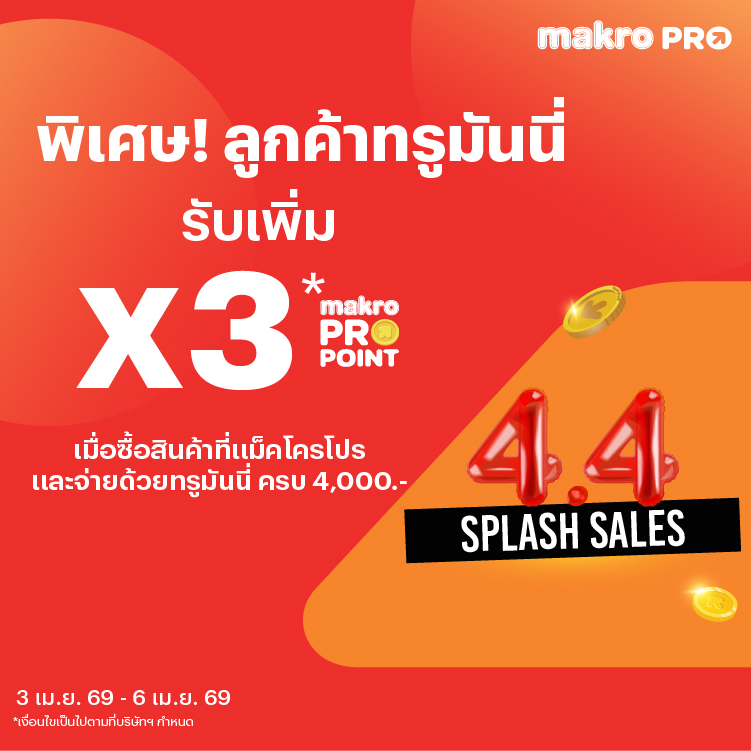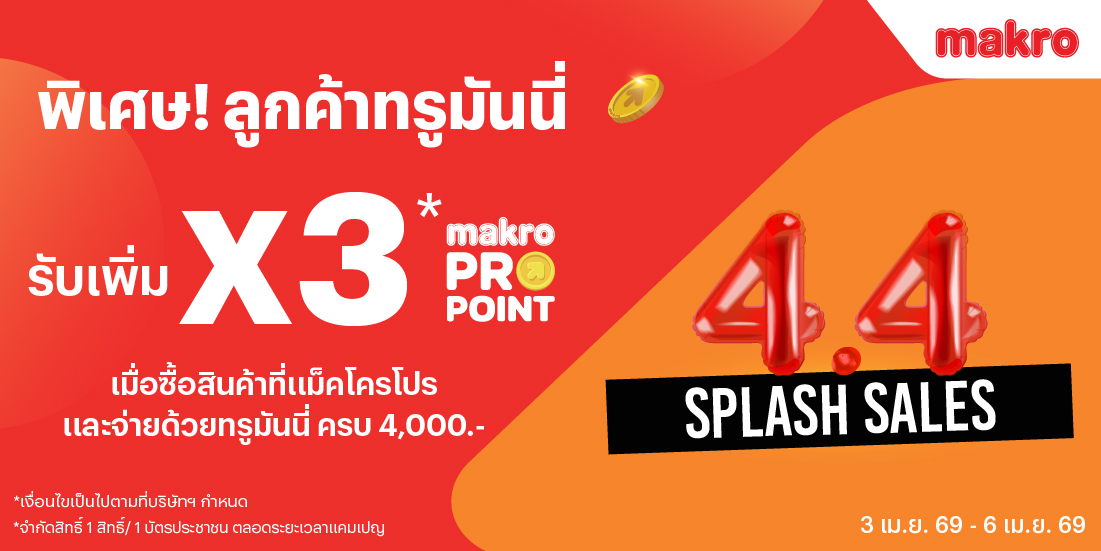 - เมื่อลูกค้าใช้จ่ายตั้งแต่ 4,000 บาท ขึ้นไปจะได้รับแม็คโครโปรพอยท์เพิ่ม คูณ 3