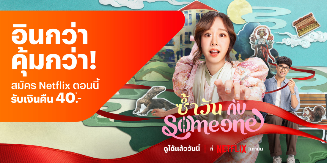 ลูกค้าทรูมันนี่รับเงินคืนรวม 40 บาท (20 บาท จำนวน 2 รอบบิล) เมื่อสมัคร Netflix และจ่ายด้วย TrueMoney