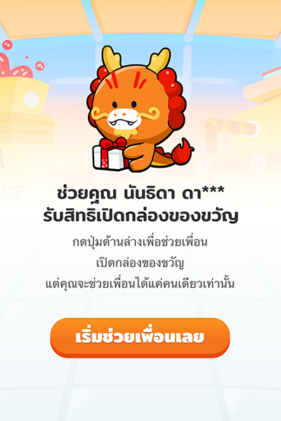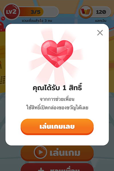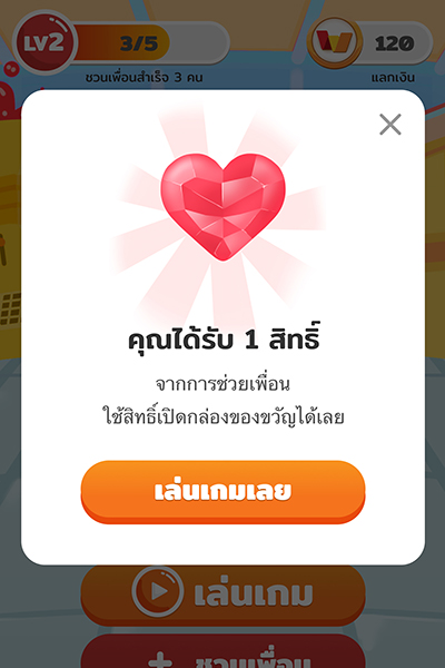 7. คุณช่วยเพื่อนสำเร็จแล้ว ทั้งคุณและเพื่อนได้รับ 1 สิทธิ์ ไปเปิดกล่องของขวัญ ฟรี!