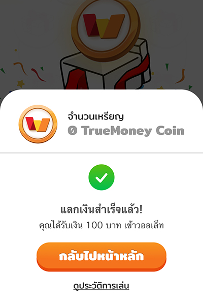 - กล่องของขวัญ จะมี TrueMoney Coin มูลค่า 0, 2, 5, 10, 20, 50, 100 เหรียญ
