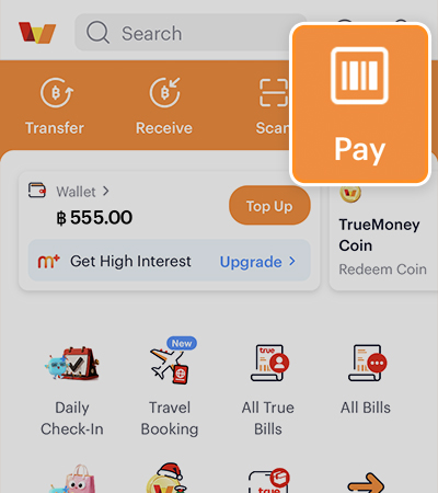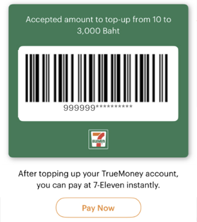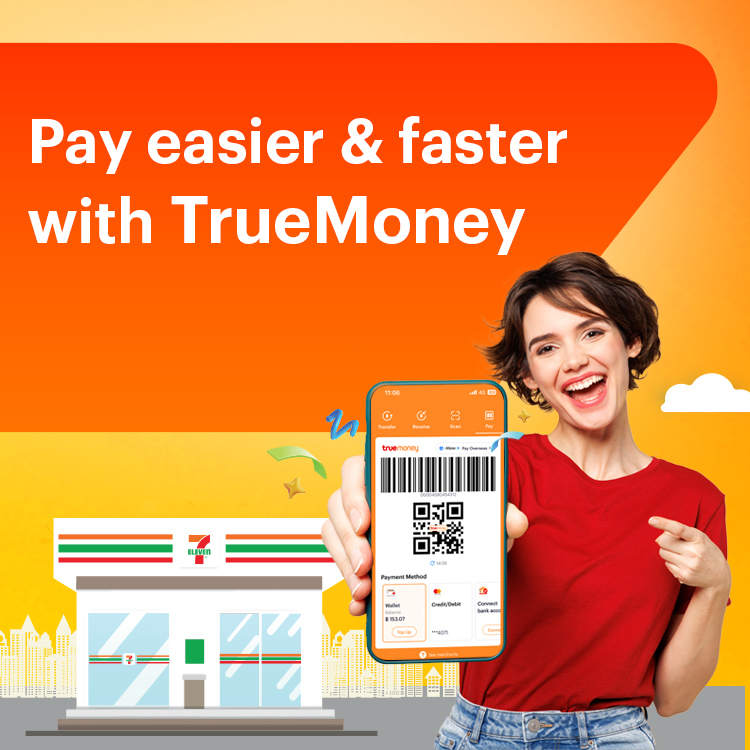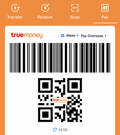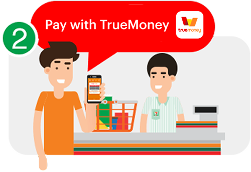 Open TrueMoney app → Tap “Pay” → Show your barcode to the cashier and say “Pay with TrueMoney” or say in Thai “Jaay TrueMoney”