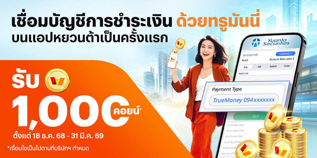 - สิทธิพิเศษสำหรับผู้ที่เชื่อมบัญชีการชำระเงินกองทุนผ่าน บริษัทหลักทรัพย์ หยวนต้า (ประเทศไทย) จำกัด