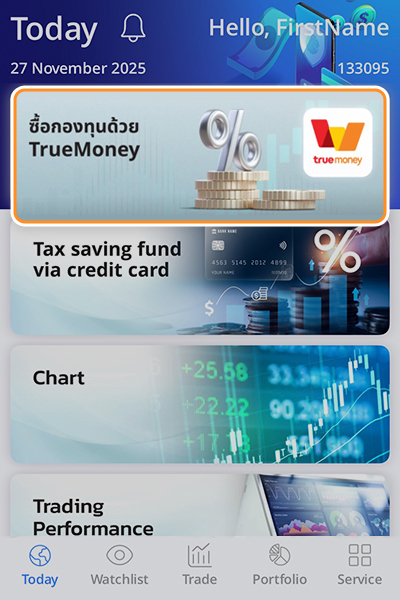 เข้าแอป Yuanta NAVI และคลิกแบนเนอร์ ซื้อกองทุนด้วย TrueMoney