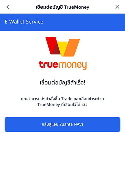 เมื่อเชื่อมบัญชีการชำระเงินด้วยทรูมันนี่กับทางหยวนต้า