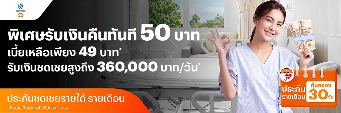 เหลือเพียง 49 บาท* ชดเชยสูงถึง 360,000 บาท*