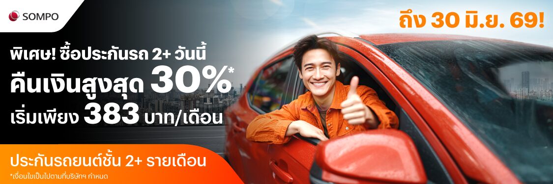 ประกันรถยนต์ชั้น 2+ รายเดือน ชดเชยสูงถึง 1 ล้าน*