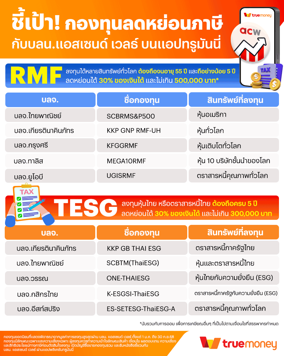 ซื้อกองทุนลดหย่อนภาษี ผ่านแอปทรูมันนี่