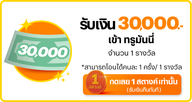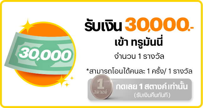 - เงินเข้าทรูมันนี่ มูลค่า 30,000 บาท จำนวน 1 รางวัล