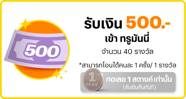- บริษัทจะทำการโอนเงินให้กับผู้มีสิทธิ์ได้รับรางวัล เงินเข้าทรูมันนี่ มูลค่า 500 บาท ภายในวันที่ 23 มกราคม 2569
