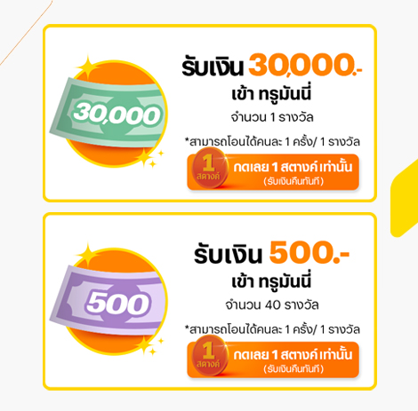 - รางวัลไม่สามารถแลกเปลี่ยนเป็นเงินสด หรือรางวัลอื่นได้รวมทั้งไม่สามารถโอนสิทธิในการรับของรางวัลให้กับผู้อื่น