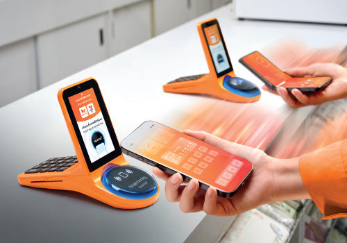 1. <b>แตะจ่ายที่เครื่อง Bluetap</b> เพียงแค่ปลดล็อคมือถือ<br>โดยไม่ต้องเปิดแอปทรูมันนี่