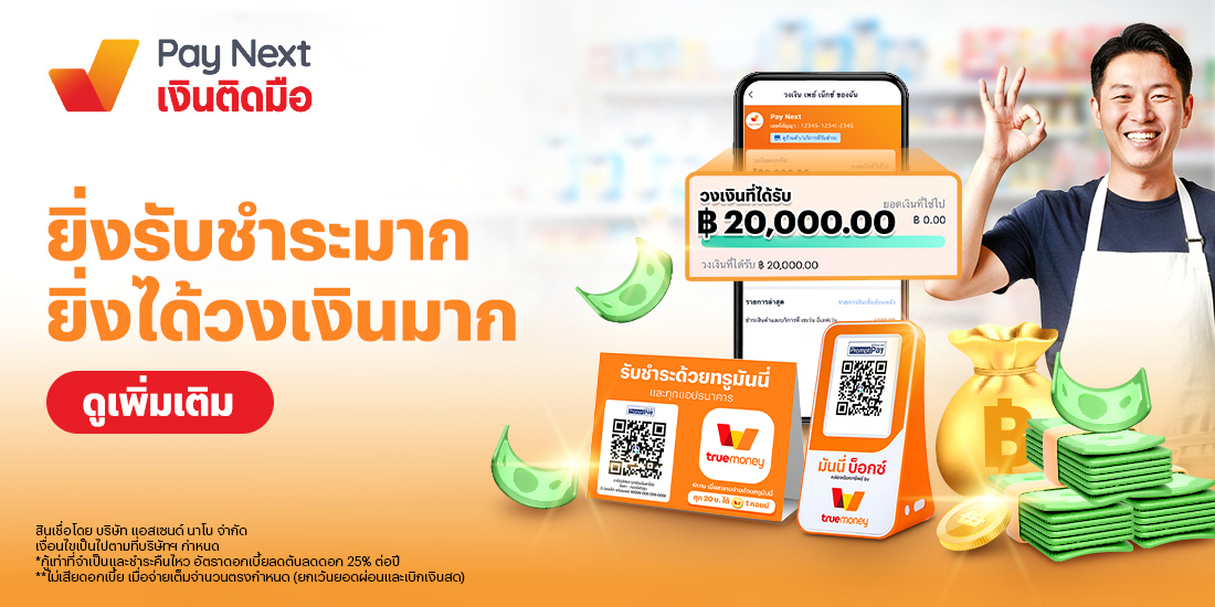 - เป็นร้านค้าทรูมันนี่ และมียอดรับชำระผ่านทรูมันนี่ต่อเดือนขั้นต่ำ 3,000 บาท อย่างสม่ำเสมอ