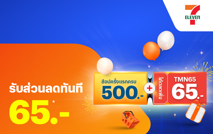 7-Elevenลูกค้าใหม่ ลดทันที 65 บ. เมื่อช้อป ALL Online ครั้งแรก ครบ 500 บาทขึ้นไป และจ่ายด้วยทรูมันนี่1 พ.ย. 68 - 30 พ.ย. 68