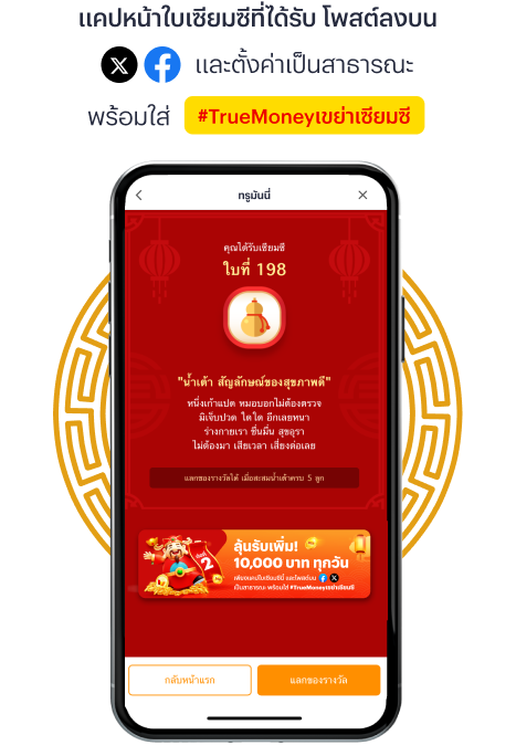 ประกาศผลทุกวัน ผ่านทางเพจเฟซบุ๊ค TrueMoney