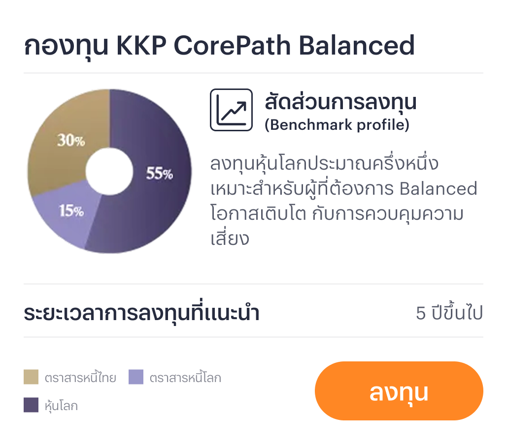 ยกระดับการจัดพอร์ตของคุณด้วยโซลูชัน Multi-Asset ระดับโลก ซึ่งกองทุน KKP CorePath Series ได้รับคำแนะนำด้านการลงทุนจากที่ปรึกษาการลงทุน คือ KKPS ภายใต้ความร่วมมือกับ Goldman Sachs Asset Management (GSAM)
