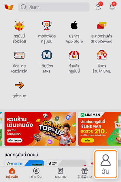 1. เปิดแอปทรูมันนี่ กด “ดูทั้งหมด“