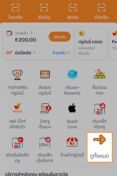 โดยเข้าไปที่ แอปทรูมันนี่ จากนั้นกด ดูทั้งหมด