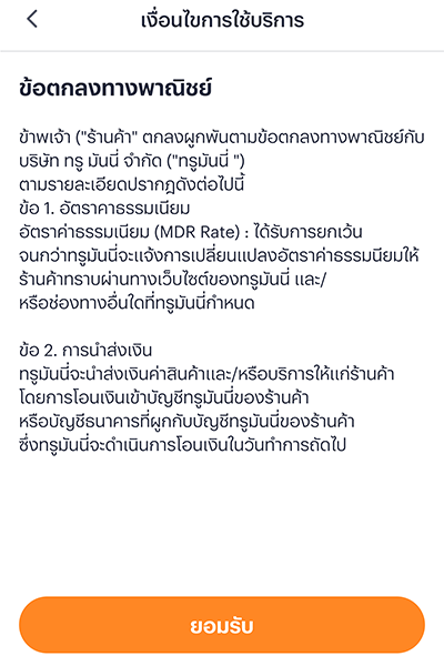 ให้ทำการสมัครเป็นร้านค้าทรูมันนี่ ภายใน 2 วัน