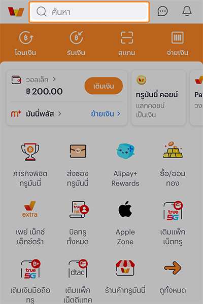 1. เข้าแอปฯทรูมันนี่ แล้วไปที่ ร้านค้าทรูมันนี่