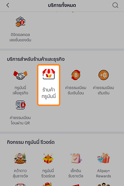 และธุรกิจ กด ร้านค้าทรูมันนี่