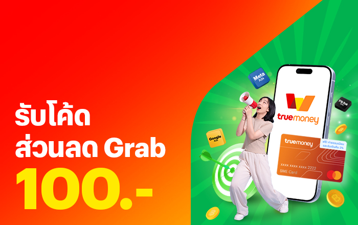 **ยอดเงินคืนสูงสุด 300 บาท/ เดือน/ หมายเลขบัตรประชาชน ของบัตร TrueMoney SME จะใช้ยอดรวมกับการจ่ายค่าโฆษณาออนไลน์ด้วยทรูมันนี่