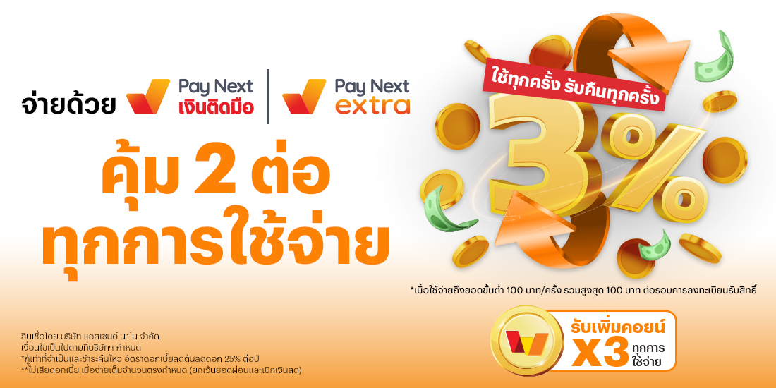 เงินคืนเข้าวอลเล็ท ในอัตราร้อยละ 3 (สาม) ของยอดเงินค่าสินค้าและ/หรือบริการที่ทำรายการชำระในครั้งนั้น